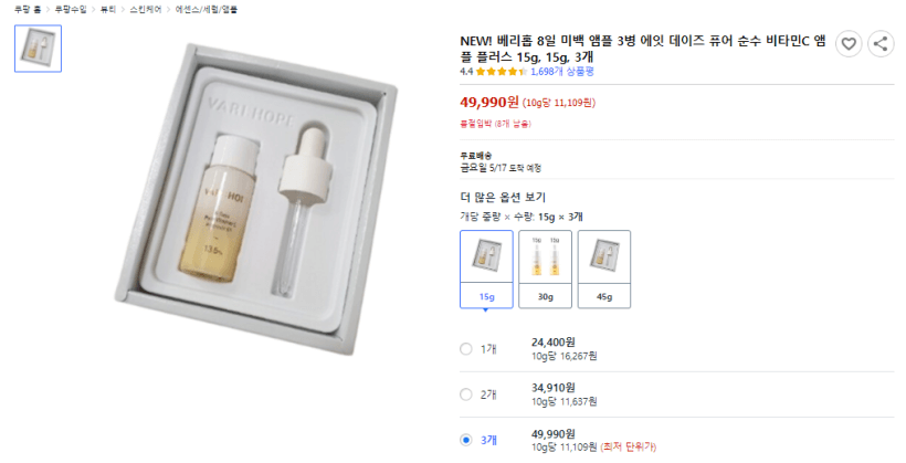 베리홉 공식 홈페이지 미백앰플과 같은 제품이라면 쿠팡에서 구매할 가능성이 높을 것 같은데요.
